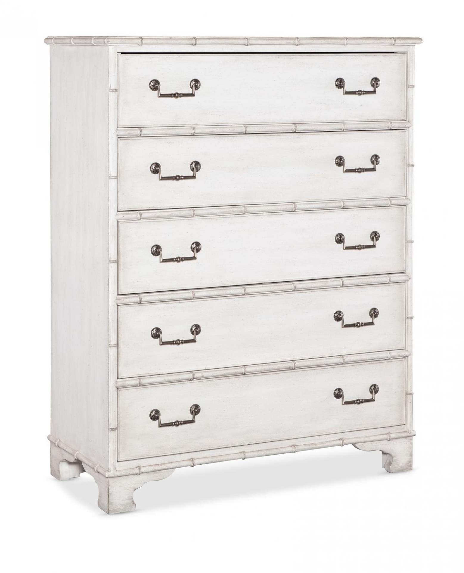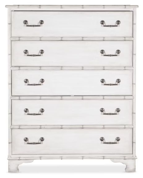 Maple veneers with solid wood edge top Chest features five drawers with self-closing drawer guides