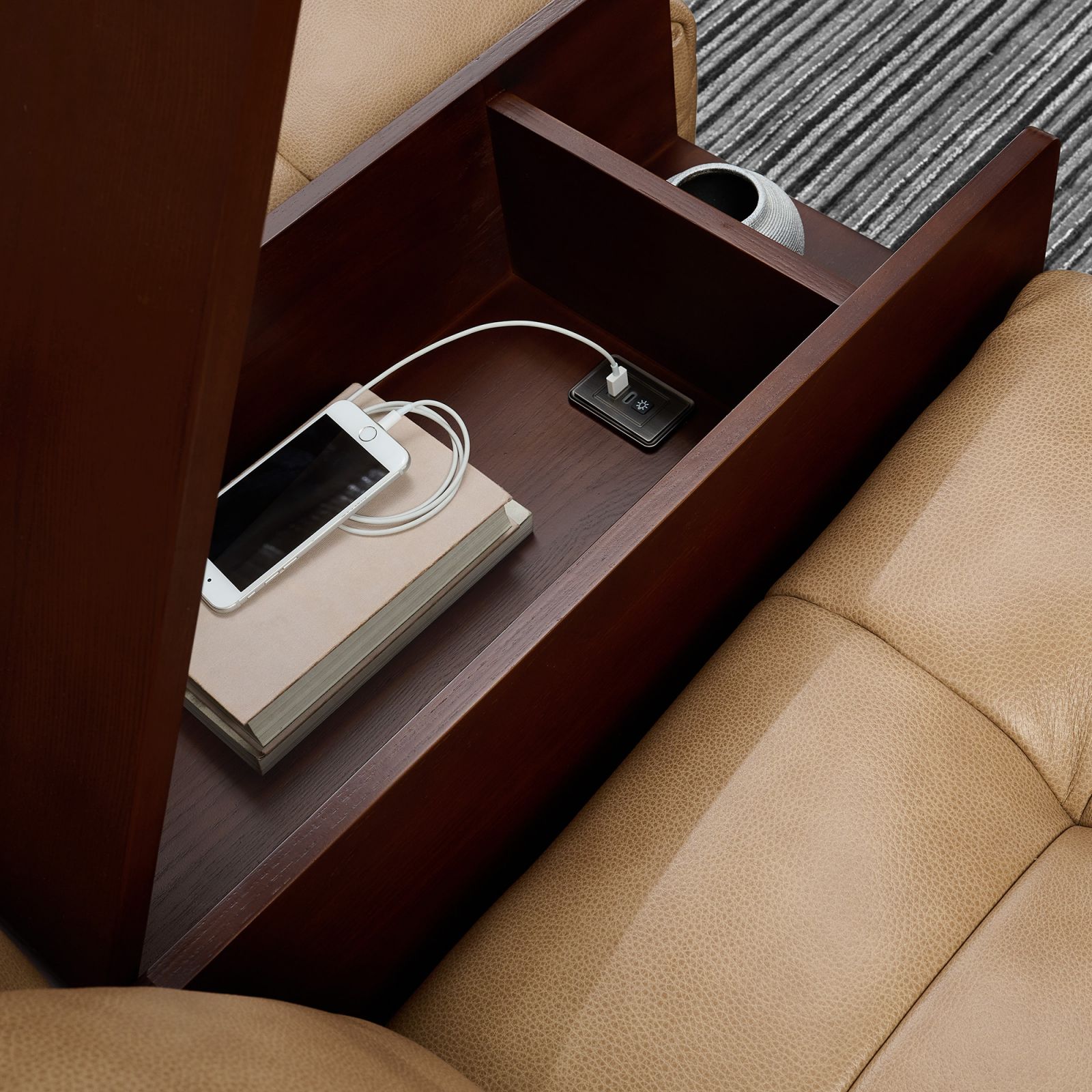 Luxurious burl finish accents