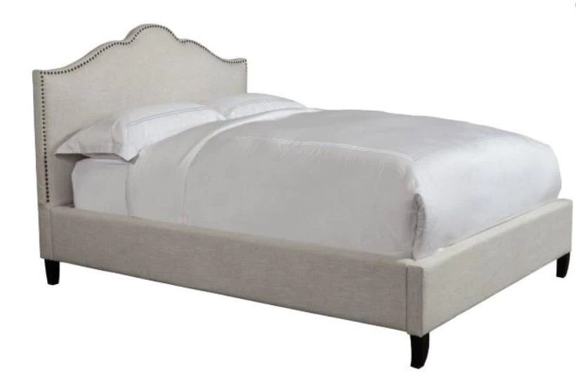 Fully upholstered bed rails are bolted on (versus hooked on) for extra stability