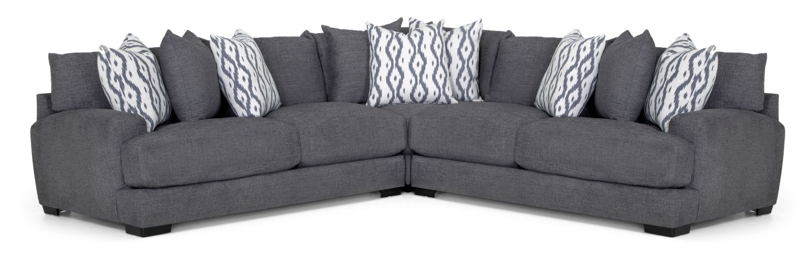 Sectional shown as Left arm loveseat, corner wedge, and right arm loveseat
