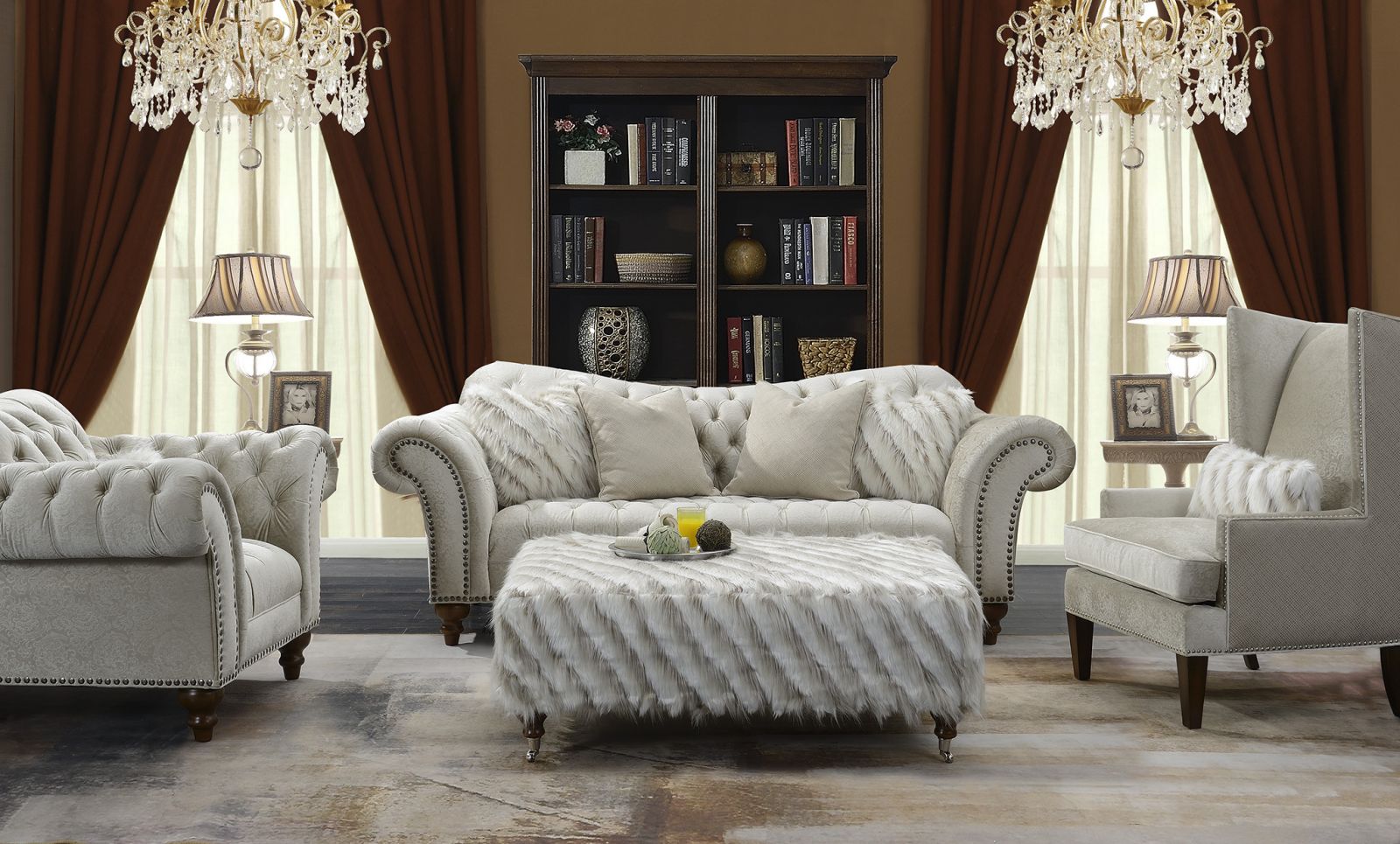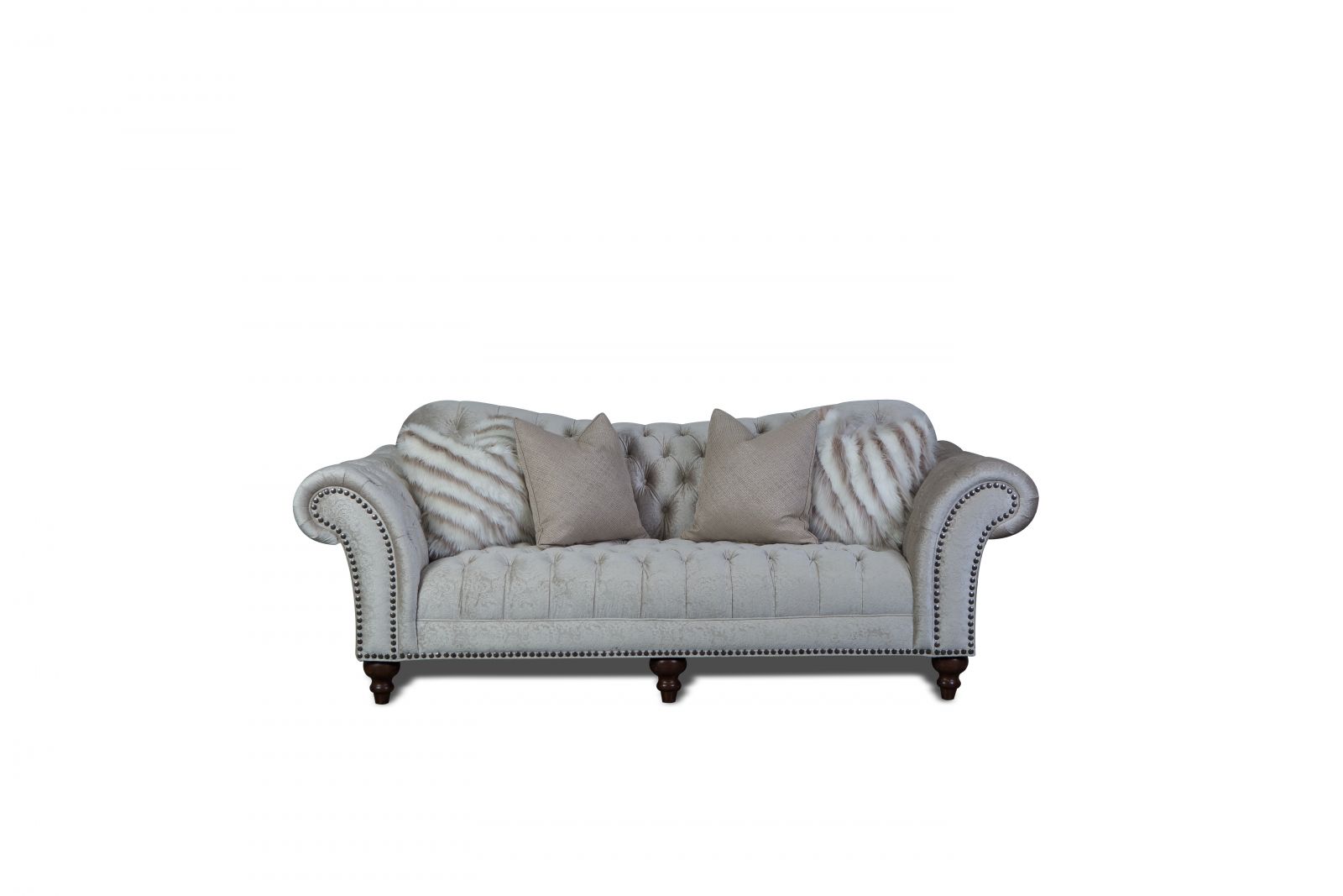 Features//+ Polyester upholstery material//+ Nail head trim//+ Hardwood and furniture grade wood frame materials//+ 8-gauge sinuous spring seat report//+ Attached seat and back cushions//+ Decorative accents//+ Removable feet