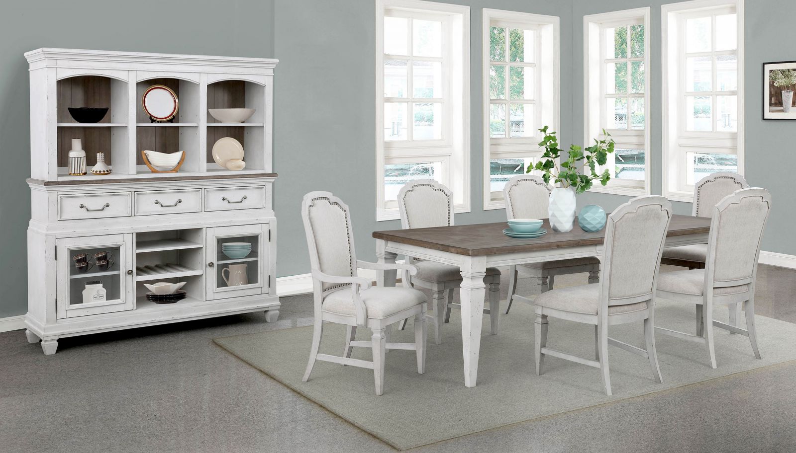Finish: Distressed white and light stained acacia top