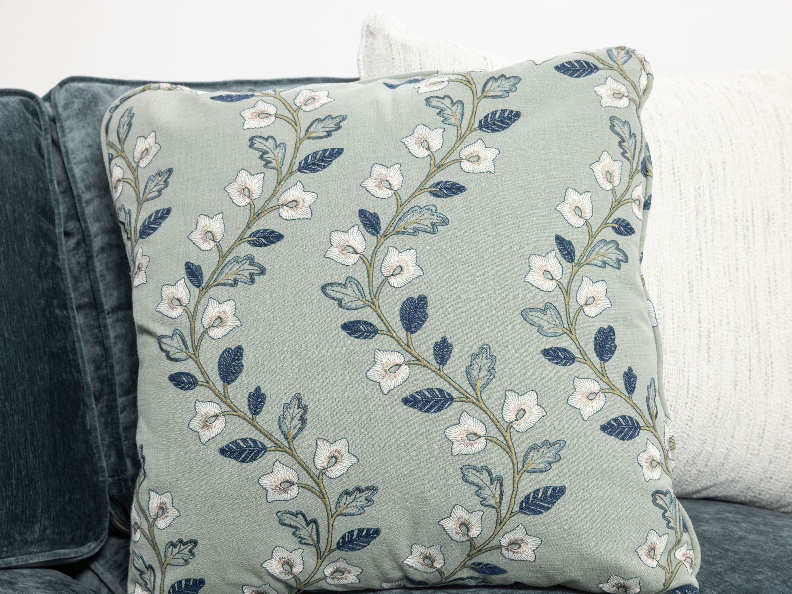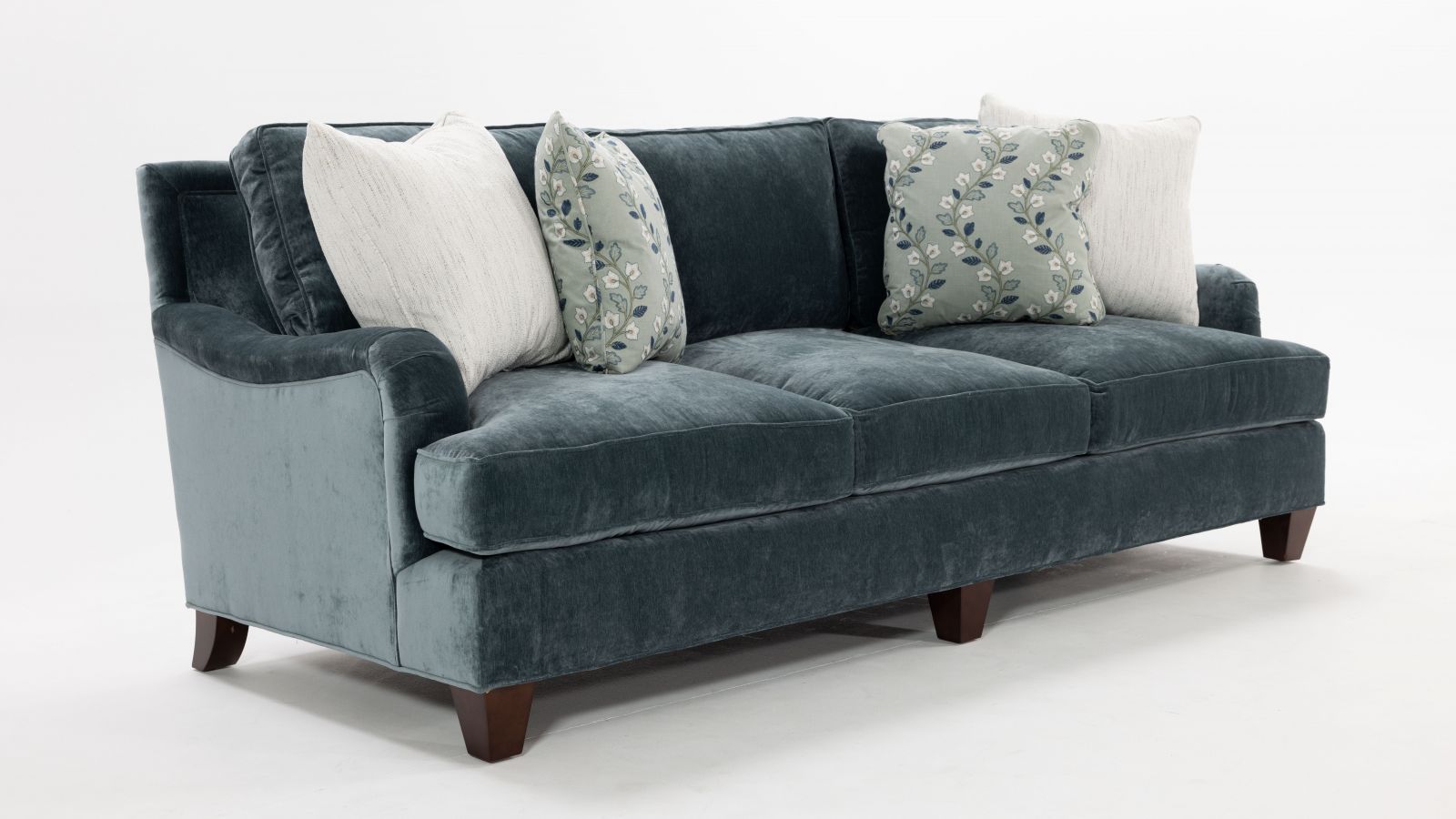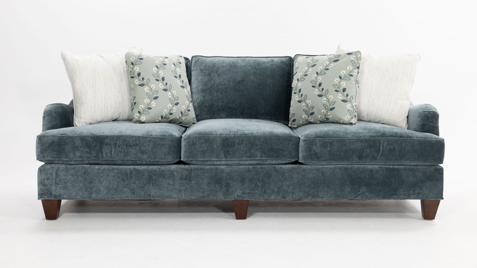 +Cushions feature 2.0 density foam core with super soft foam cap encased in hypoallergenic down proof ticking//+50/50 blend of fiber and feathers in cushions//+Sinuous wire bottom springs and doubled up on ends for durability//+12 gauge inside back springs//+2 lateral tie wires on all sinuous wire for better seat stability//+Zippered blend down toss pillows